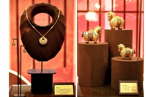 (图:六福珠宝X唐宫文创联名产品唐彩菱(左)、唐彩墩墩马(右))