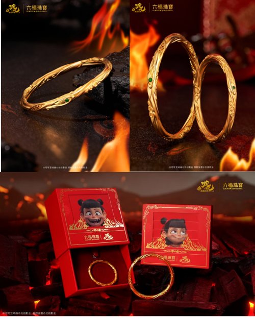 基于此,六福珠宝此次二度牵手“哪吒IP”,选取了电影《哪吒之魔童闹海》中具有代表性的哪吒、敖丙、乾坤圈、风火轮、混元珠等经典角色和元素,并运用传统古法制金工艺与硬足金鎏彩技术,将这些元素打造成多款璀璨华美、寓意丰富的足金首饰,也是对饰品的个性承载功能的深刻洞察。